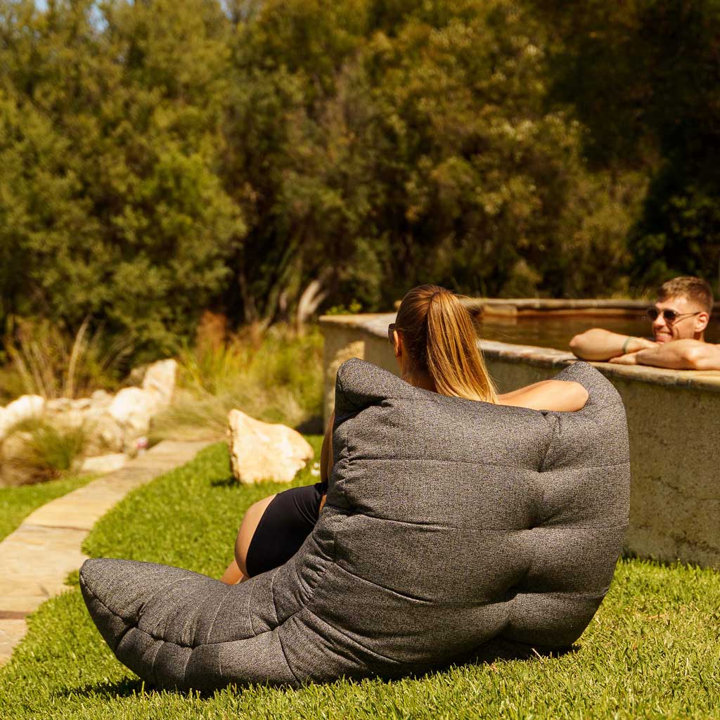 En vakker designer utendørs sittesekk med struktur, quilting og resort-kvalitet stil.