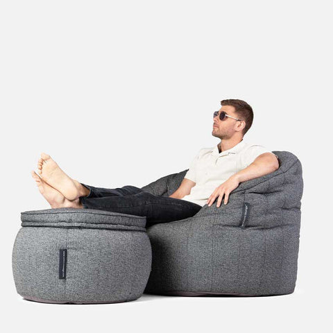 Den unike Wing Ottoman har omtrent 90 liter Premium Fylling. Wing Ottoman skal fylles tett, slik at toppen er fast, men flat nok til at Memory Foam-toppen lett kan låses med glidelås.