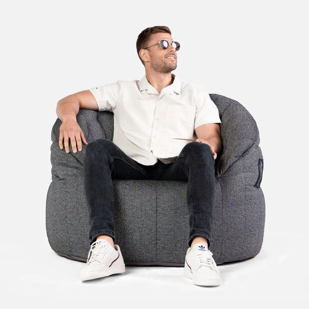 En vakker designer utendørs bean bag-stol med struktur, quilting og resort-kvalitet stil.