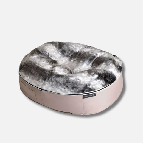 Silken Grey er et tykt, frostspekket fuskepels-stoff utviklet for maksimal mykhet og holdbarhet. Trekket består av tettvevde syntetiske fibre som etterligner ekte pels, uten å røyte eller miste hår slik billig imitert pels kan gjøre. Overflaten kjennes fløyelsmyk og luksuriøs – perfekt for husdyr med vonde ledd eller for de som elsker å grave seg ned i noe lunt. Materialet puster moderat og isolerer godt, noe som gjør det behagelig året rundt (varmer om vinteren, og kan tas av om sommeren). Vedlikeholdet er enkelt: toppen kan glidelåses av basen og maskinvaskes skånsomt på mildt program. Vi anbefaler å lufttørke trekket helt før det festes på sengen igjen, så bevarer du den deilige mykheten lengst mulig.