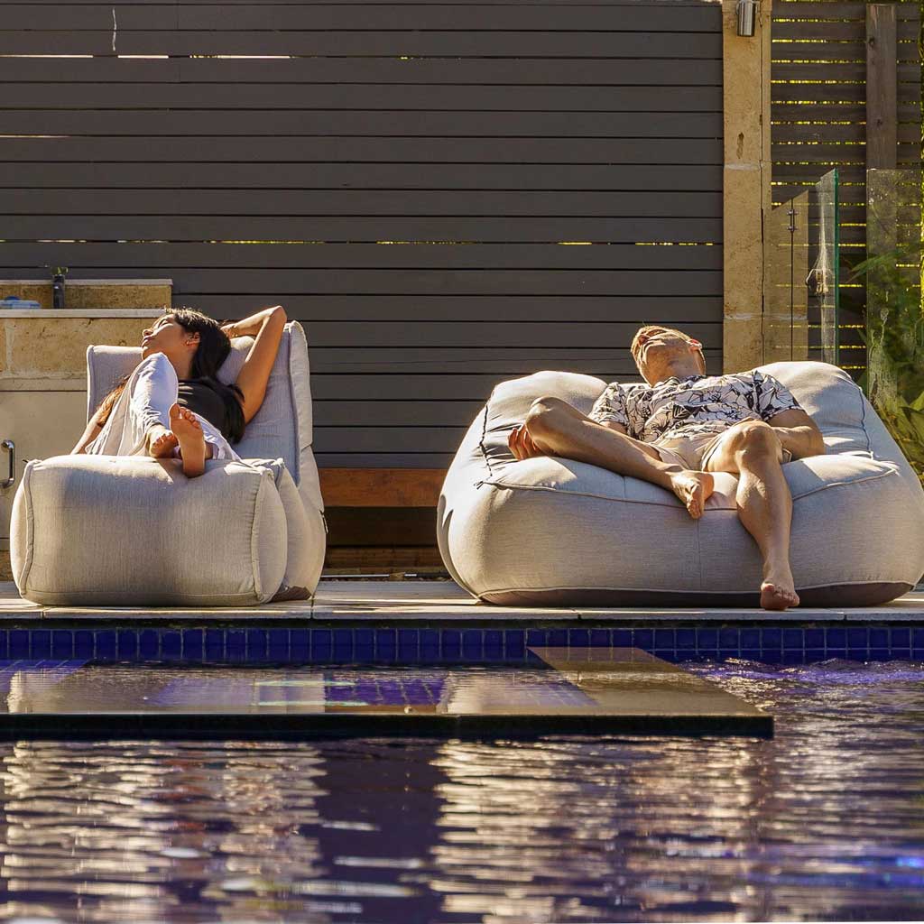 Ta vekten av skuldrene og nyt stilig, ergonomisk komfort. Den vakre Evolution Sofa (Deluxe) er vanntett, men likevel utrolig myk. Det elegante, stripede stoffet er ideelt for kystnære vannfronter, båthavner, 5-stjerners hotell ved bassengene, og også moderne stuer. Velkommen til din egen personlige sky av en sitteplass!