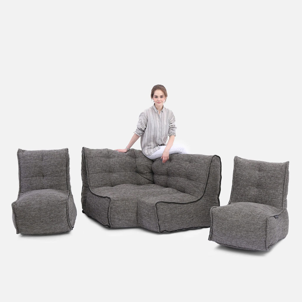 Myke, strukturerte saccosekk møbler kan revolusjonere din bolig og uteplass, og la deg fordype deg i luksus. Denne sofaen er utmerket for unge par, og den har plass til 2-3 personer og er en total lykke når du strekker deg i hjemmet ditt. Sofagruppen er også utformet for å kunne brukes like bra utendørs som innendørs. Sofaen er lett og kan tas fra hverandre. Dermed kan du enkelt flytte deler eller hele sofaen ut og inn etter hvor det er behov for den. Stoffet er svært slitesterkt og vanntett for å tåle vær og vind.