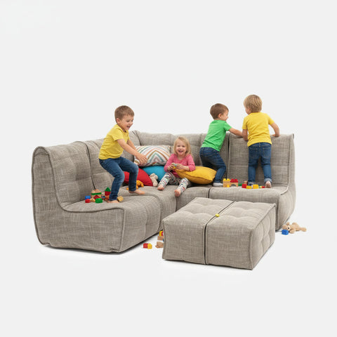 Her er en kompakt, taktil designersofa hvor du kan lene deg tilbake og slappe av, sette føttene opp og slappe av omtrent som du vil. Denne symmetriske kombinasjonsmodul-sofaen er perfekt for leiligheter i alle størrelser, og kan være ideell for et stuehjørne eller stå fritt i sentrum av en stor åpen plass.