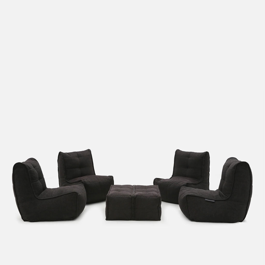 Den har en nydelig tekstur men er samtidig slitesterk og ståler bruk. Stoffer er ton-i-ton rektangulært vevd med noe lysere svarte tekstiler for ekstra dybde. Svart safir er designet for dyre sofaer, og passer derfor utmerket godt på en saccosekksofa.