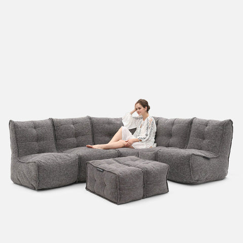 Denne populære Ambient Lounge® modulære konfigurasjonen er ideell for felles boarealer, familierom, resepsjonsområder på kontorer, episke underholdningsområder for barn, hjemmekino-rom og møbler til leiligheter på Airbnb. Stor nok til å romme opptil 4 personer samtidig og med en perfekt kompakt design for store hjørner eller utradisjonelle plasseringer – din sofagruppe kan være hele stuen din – til en brøkdel av prisen på en tradisjonell stuesuite.