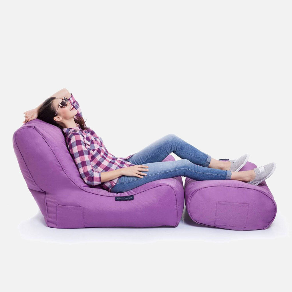 Dette er en sittesekk utformet for både innendørs og utendørs bruk. Det betyr at stoffet er designet for å tåle vær og vind, samt være behagelig å sitte på.