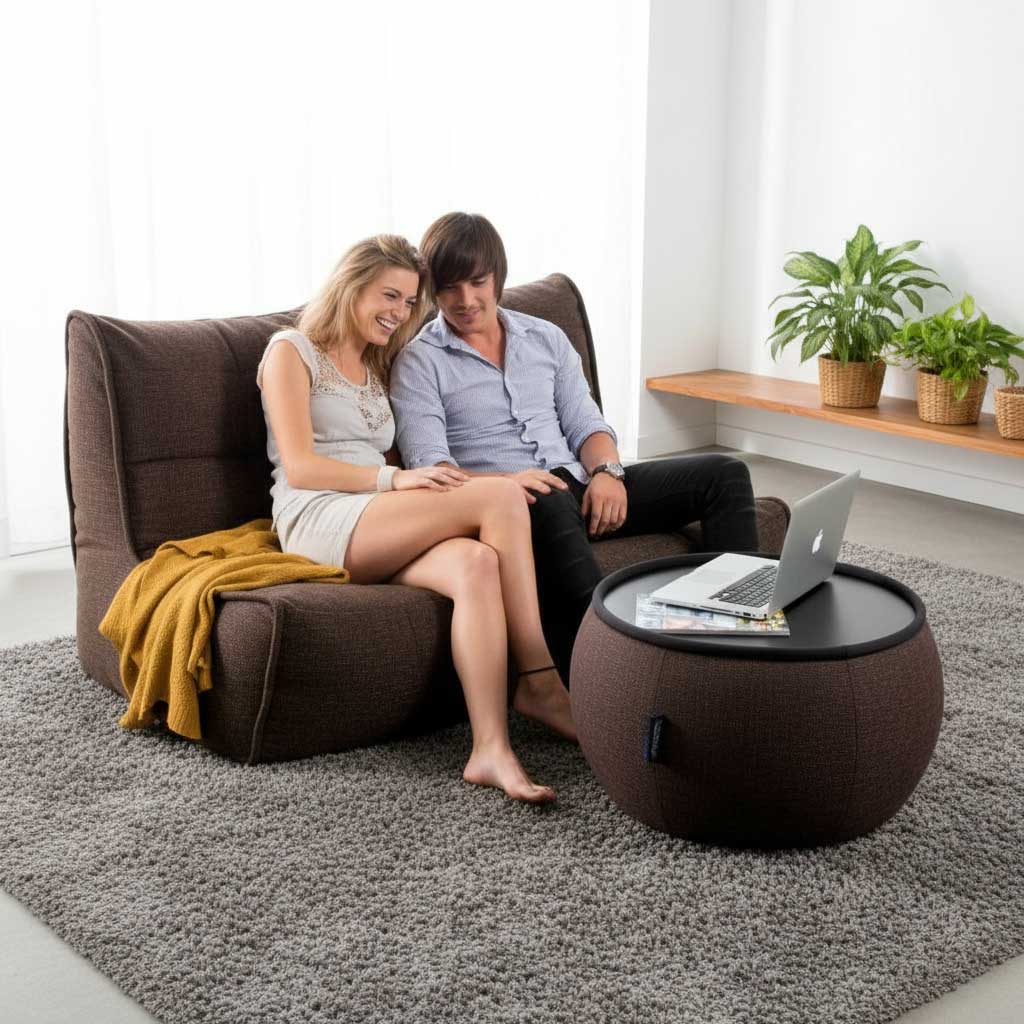 Som du vil se, så er Twin Couch faktisk to individuelle seter som er festet sammen, noe som gjør møbelet anvendelig i den grad at du enkelt kan separere og flytte på det. Hvert av de to individuelle setene har to kamre som gjør at fyllingen ikke går rett mot bunnen slik det ofte gjør i andre produkter. På innsiden strekker en spesiell elastisk stropp trekket på en måte som gir møbelet det flotte utseendet som er så ettertraktet. Det er viktig å fylle bakenden nærmest til randen for god støtte og utseende, mens det for fronten handler om ditt komfortnivå, der folk flest foretrekker å la seteområdet være noe slapt, da setet på denne måten tilpasser seg din.