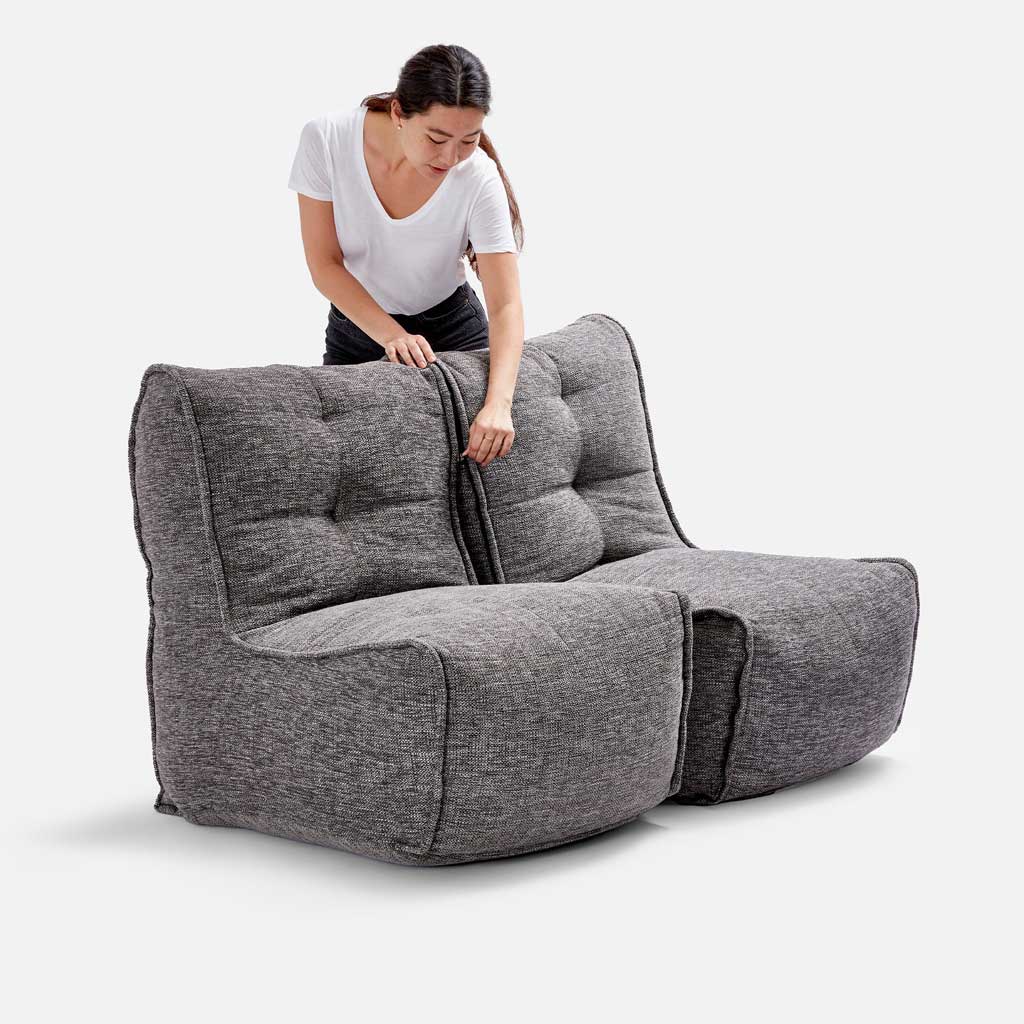 Som du vil se, så er Twin Couch faktisk to individuelle seter som er festet sammen, noe som gjør møbelet anvendelig i den grad at du enkelt kan separere og flytte på det. Hvert av de to individuelle setene har to kamre som gjør at fyllingen ikke går rett mot bunnen slik det ofte gjør i andre produkter. På innsiden strekker en spesiell elastisk stropp trekket på en måte som gir møbelet det flotte utseendet som er så ettertraktet. Det er viktig å fylle bakenden nærmest til randen for god støtte og utseende, mens det for fronten handler om ditt komfortnivå, der folk flest foretrekker å la seteområdet være noe slapt, da setet på denne måten tilpasser seg din.